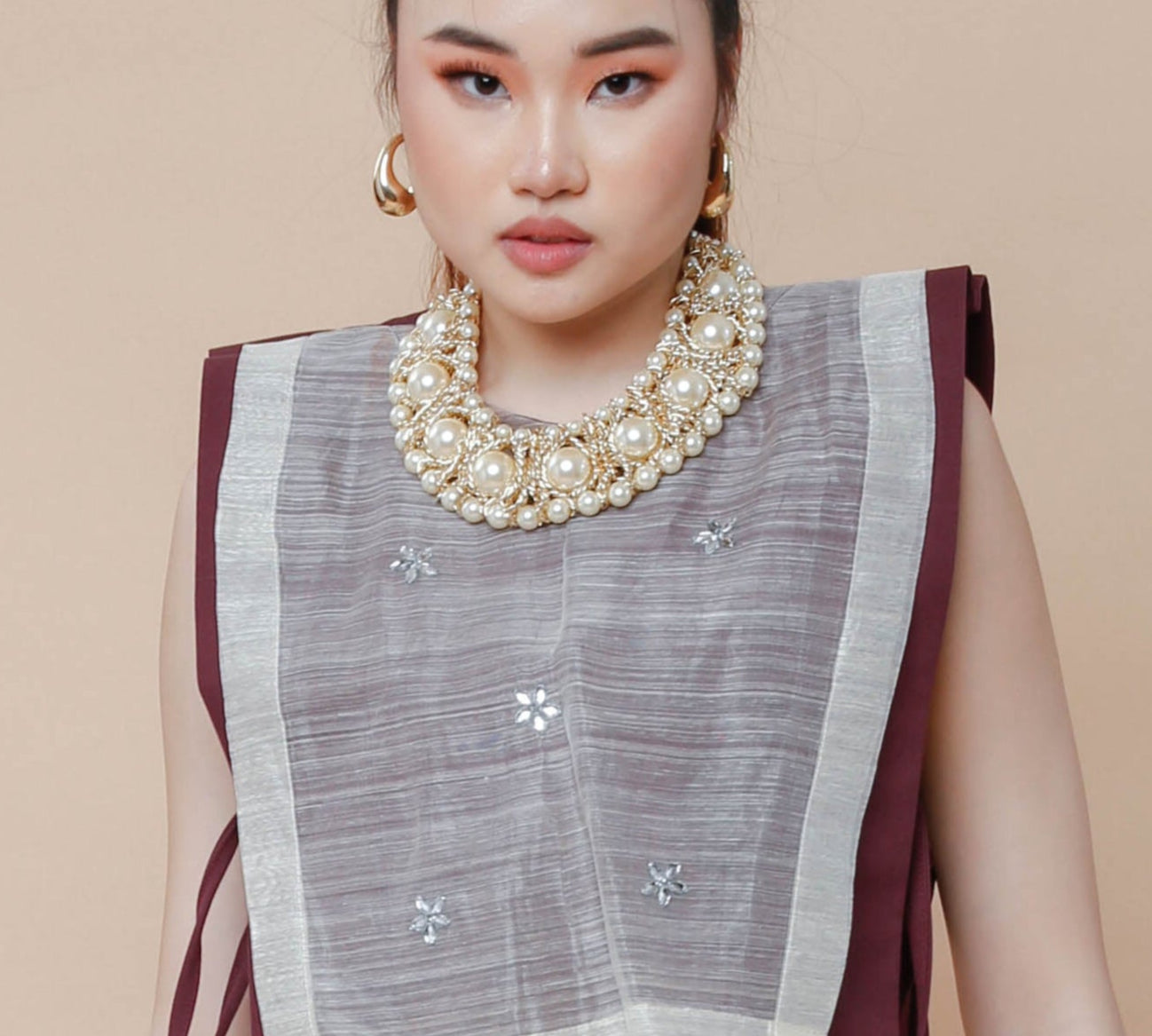 Crafted with meticulous care, this maroon Barong bib showcases intricate hand-beaded appliques that elevate traditional Filipino wear. Its rich color and delicate embellishments make it a refined accessory, perfect for adding cultural elegance and a distinguished touch to formal attire. Ideal for special occasions, it embodies artistry and heritage in a subtle yet striking statement.