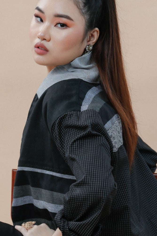 Turn heads in the Rockstar Jacket, where different shades of black meet in a bold blend of Binakol and Kantarines stripes. Sleek and edgy, this jacket adds a splash of personality to your style while keeping it effortlessly sophisticated. Perfect for those who want to stand out without saying a word.