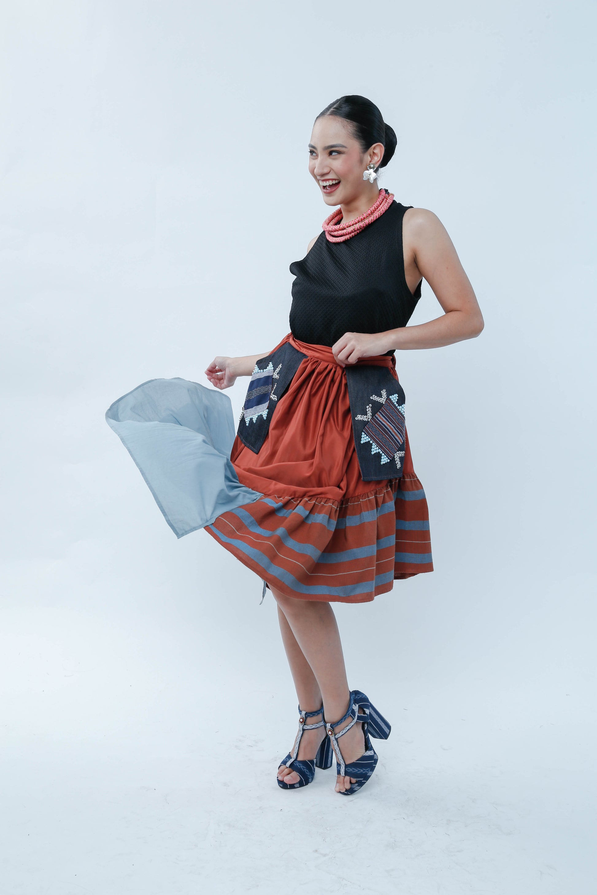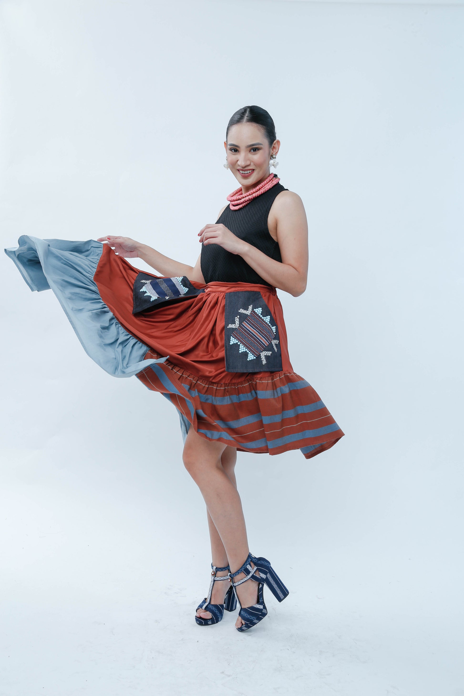 Step out in style with the Rust Orange Manila Skirt featuring a charming Yakan pocket. Its vibrant hue adds a burst of sunshine to your wardrobe, while the authentic Yakan pocket offers a touch of cultural flair and handy storage. Perfect for twirling through sunny days or casual outings, this skirt turns everyday moments into a joyful celebration of color and comfort.