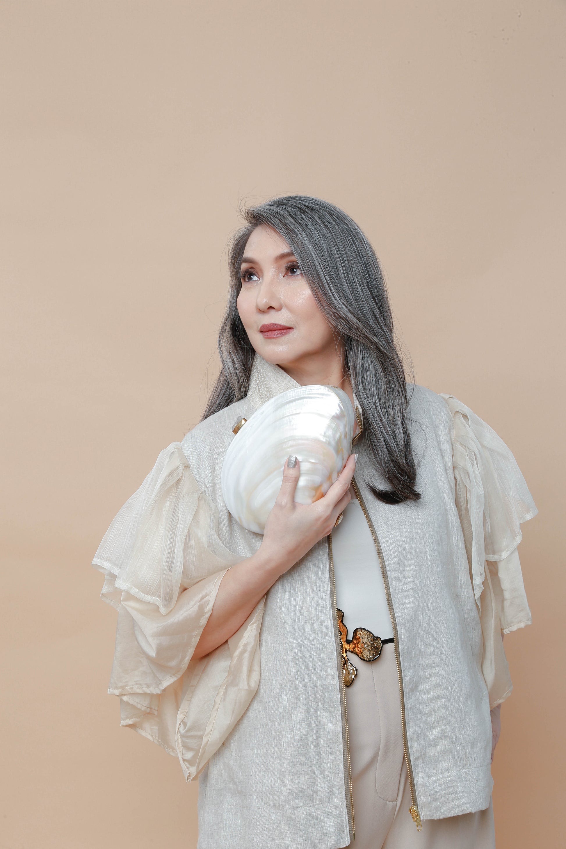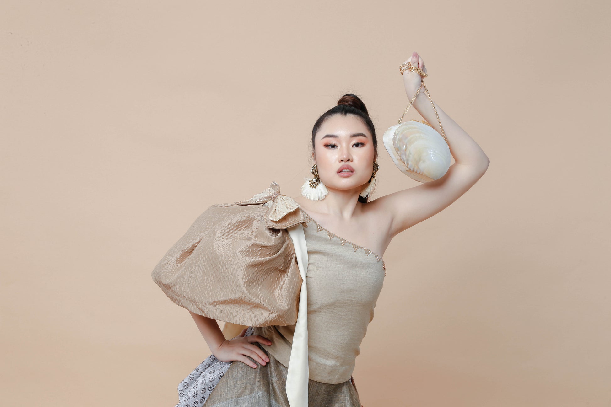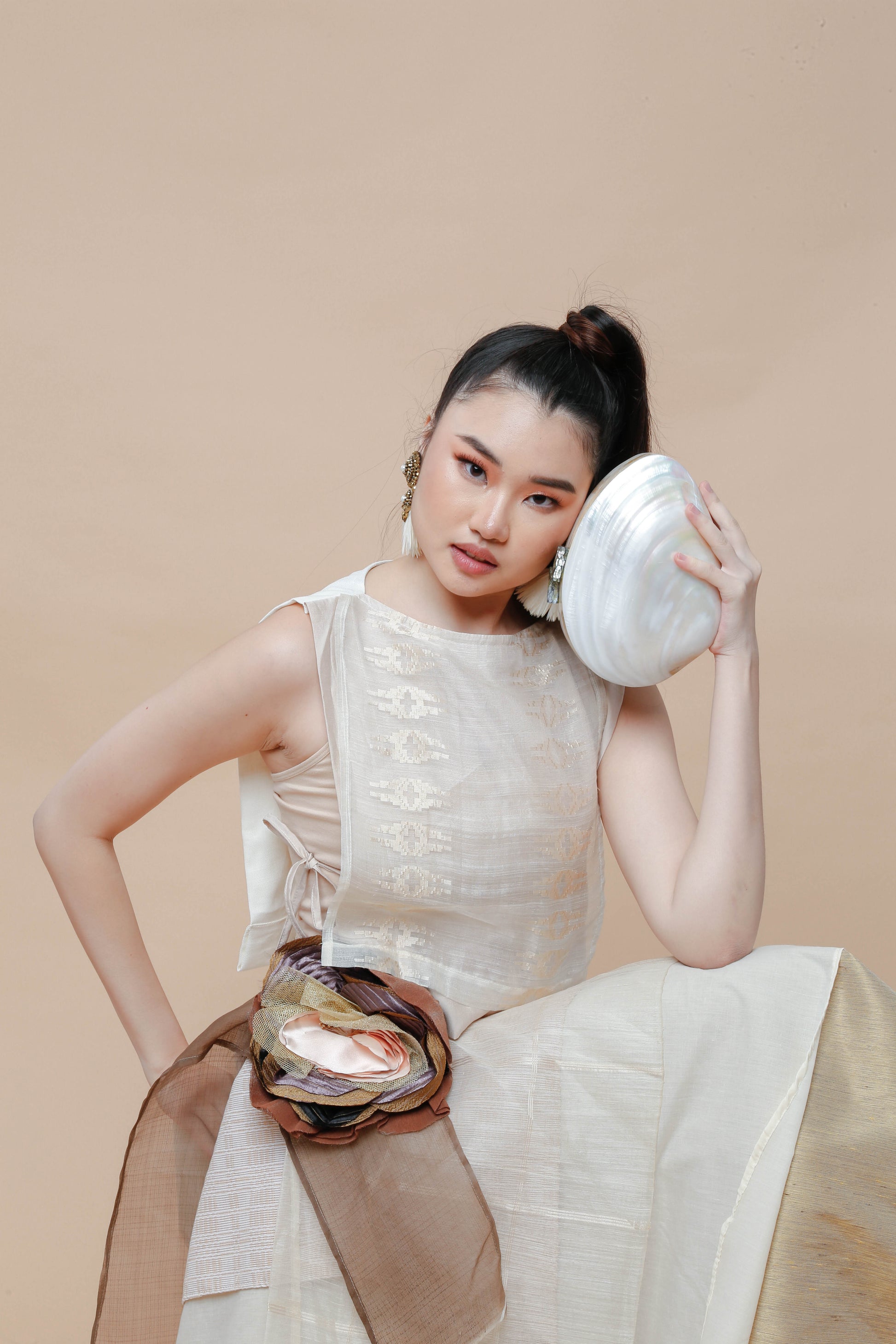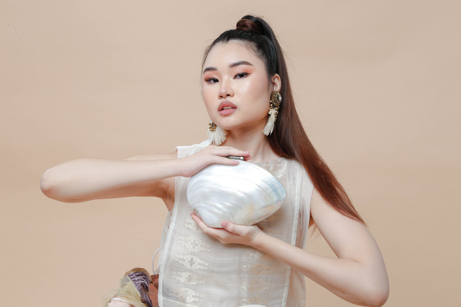 The Perlas ng Silanganan clutch bag embodies refined elegance with its exquisite shell construction. This sophisticated accessory offers a graceful sheen and a distinctive texture, making it an ideal choice for elevating your evening ensemble. Compact yet striking, it pairs timeless natural beauty with modern design to complement your most polished looks.