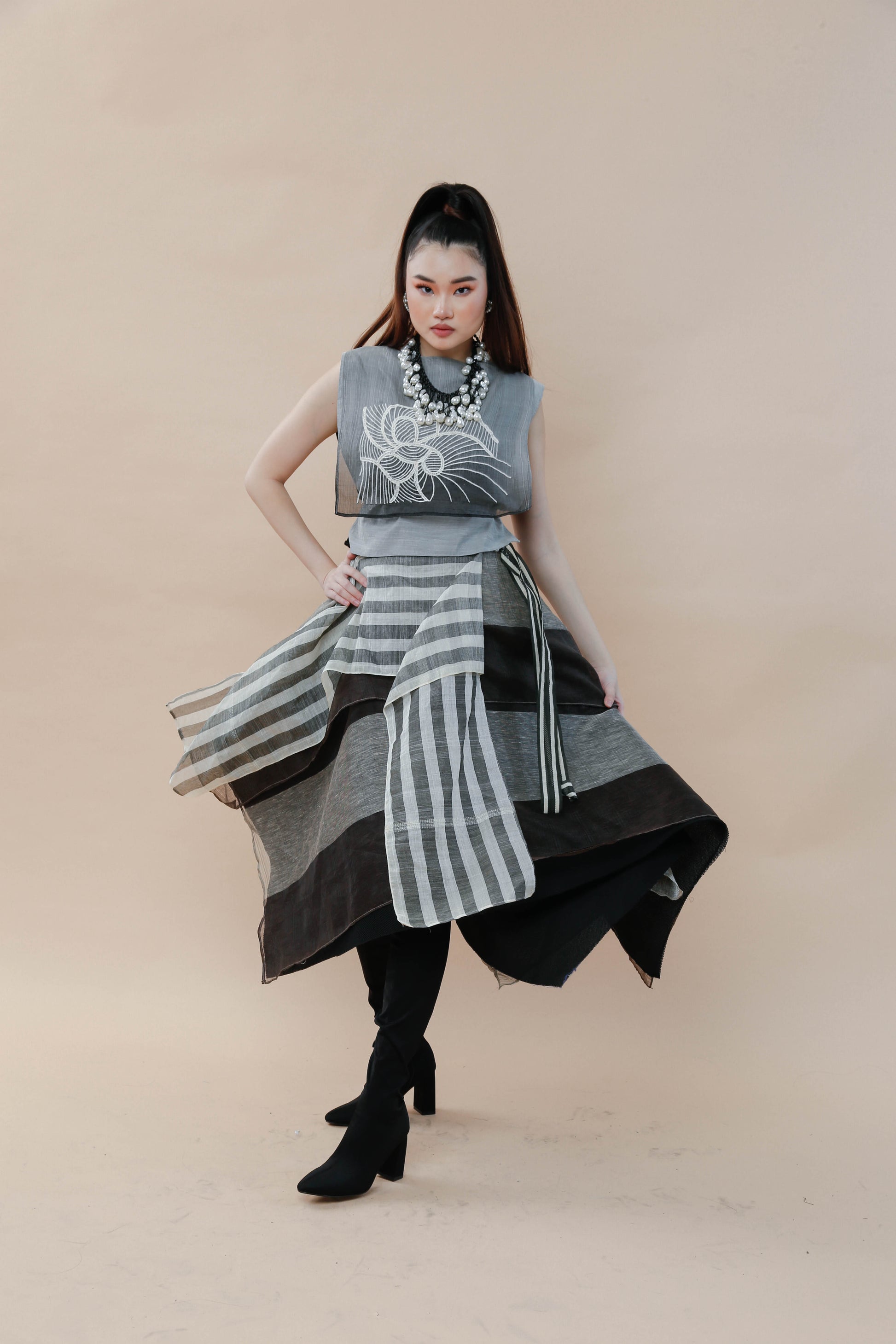 Sibagat Abaca Stripes Multi Layer Freestyle Skirt