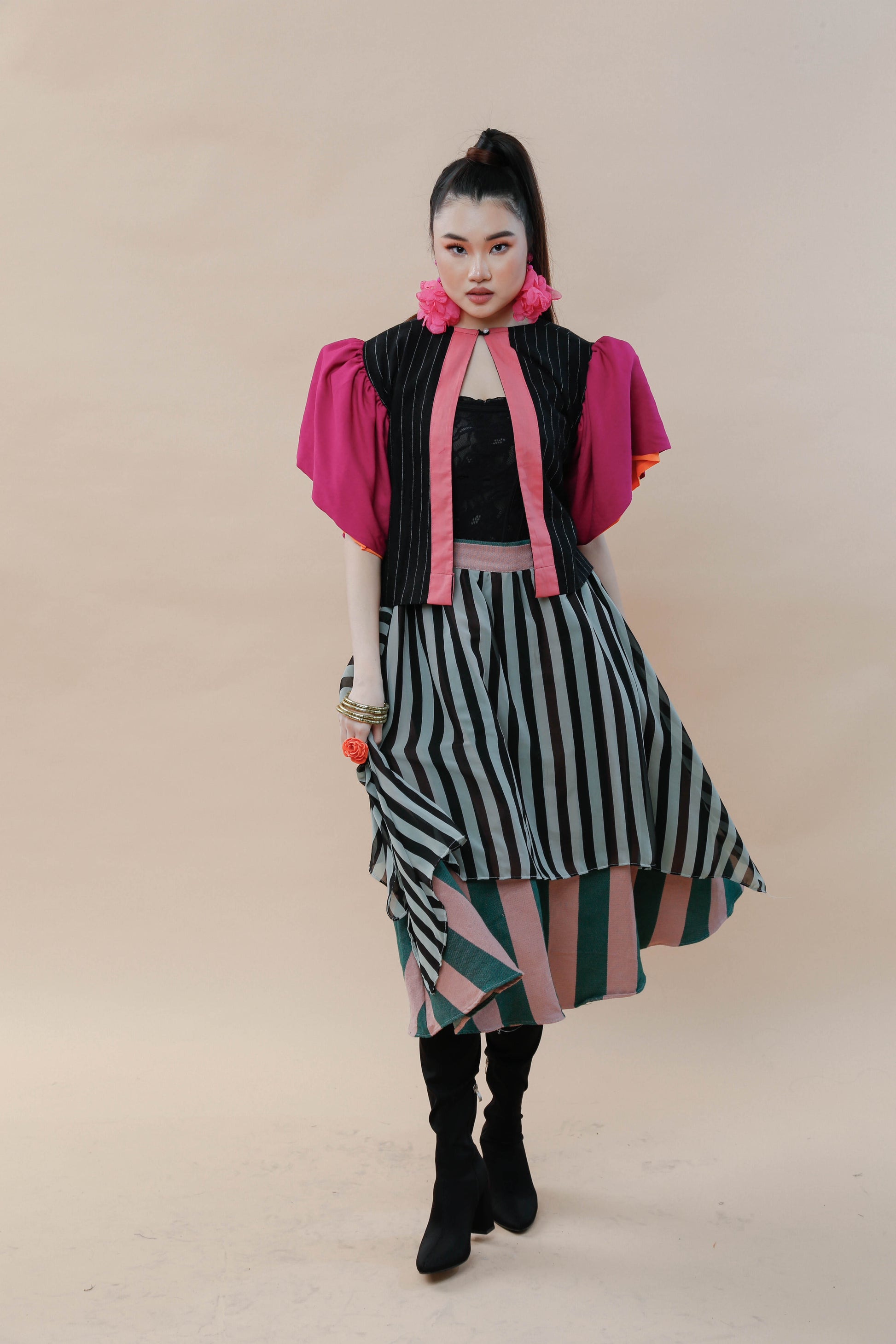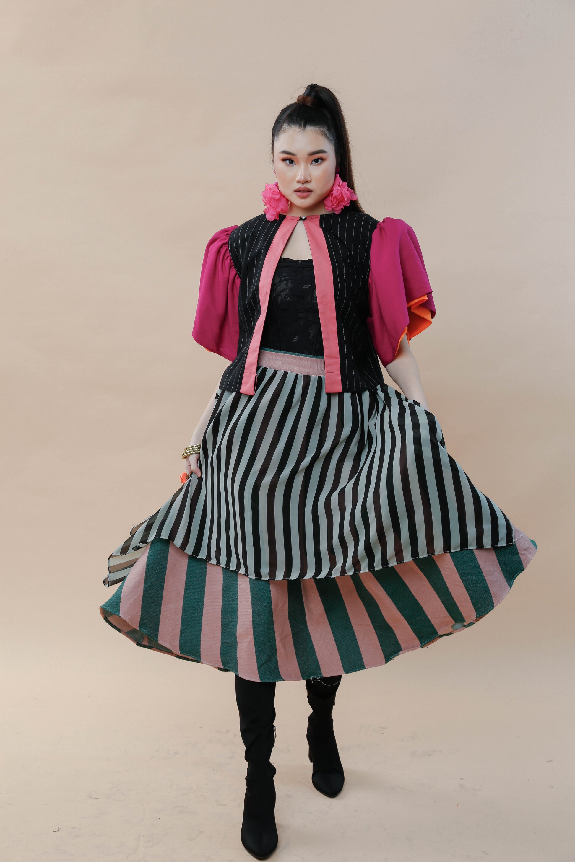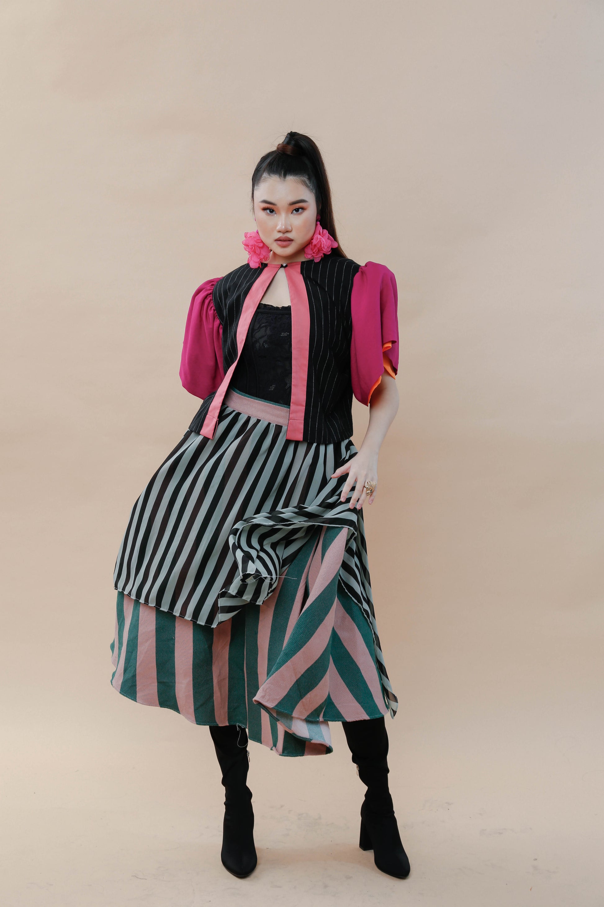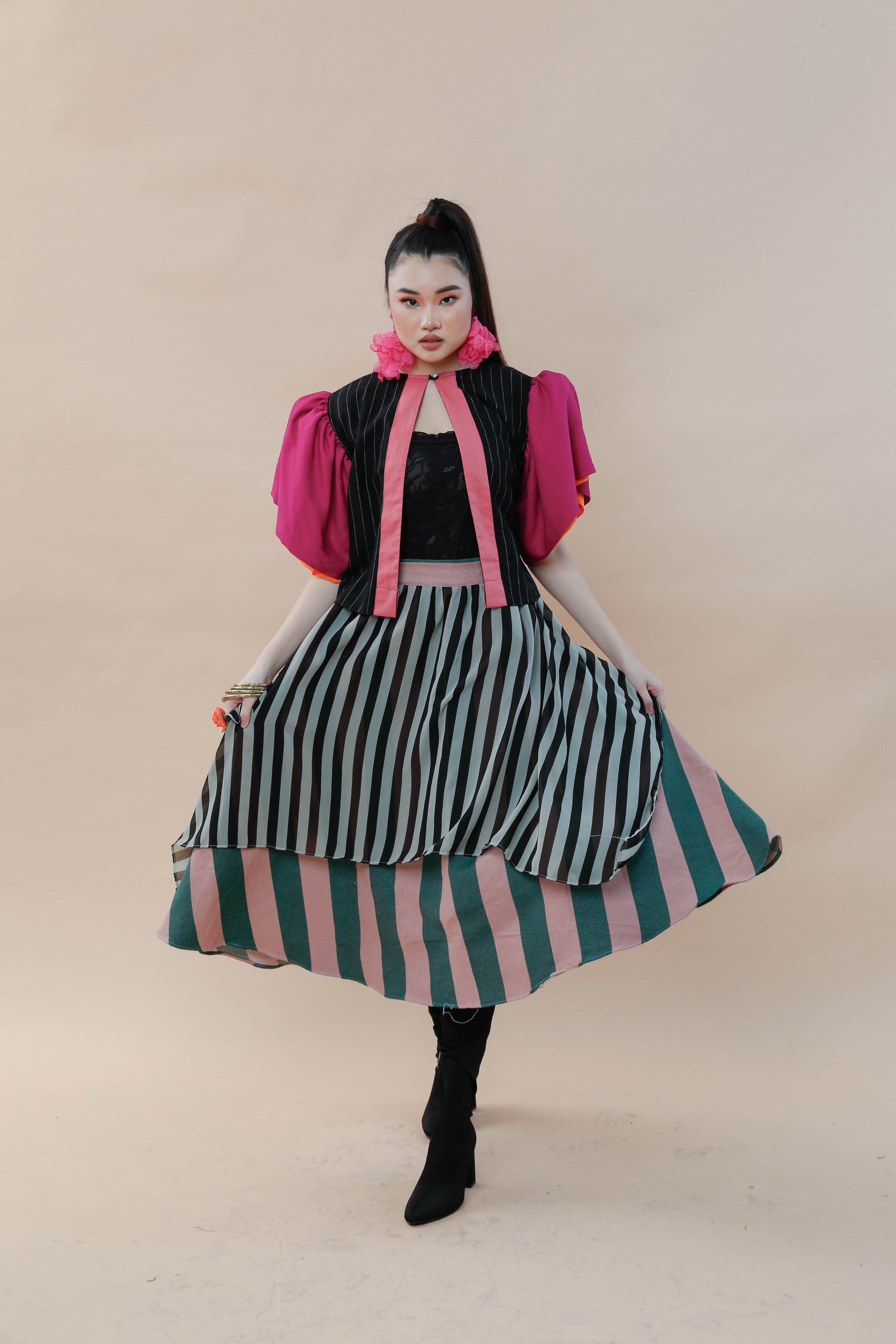 Add a splash of fun to your wardrobe with the Patong-Patong Skirt in Green Stripes. Its lively stripe pattern brings fresh energy to any outfit, perfect for playful days and sunny adventures. Comfortable and stylish, this skirt lets you twirl through your day with effortless charm.