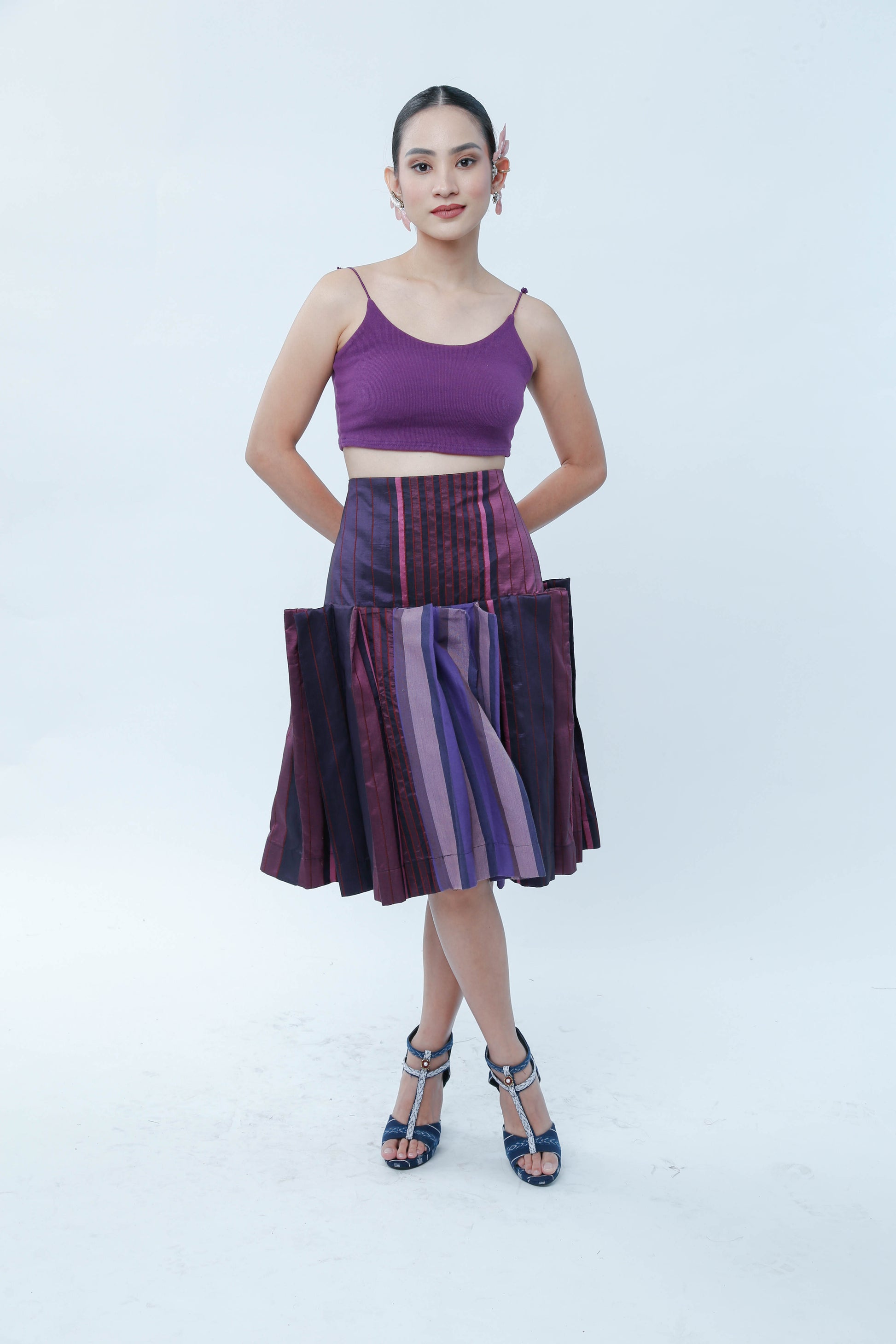 The Ube Pleated Skirt redefines contemporary fashion with its playful pleats and avant-garde silhouette. Crafted for those who embrace unconventional style, this skirt adds dynamic movement and bold structure to any outfit. Its unique design bridges artistic flair with wearable elegance, making it a statement piece for fashion-forward wardrobes.