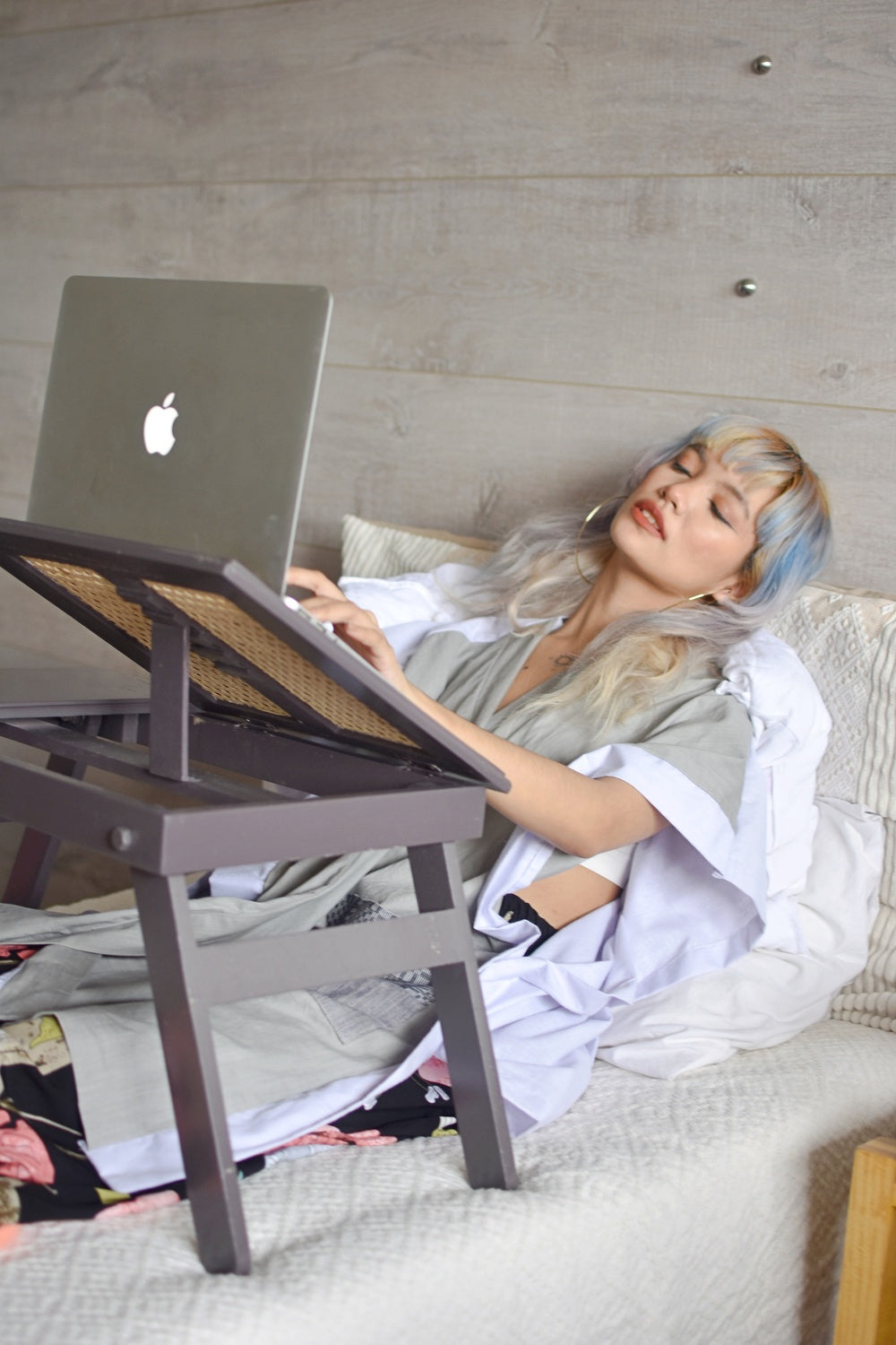 - You may fold it flat and use as your Breakfast on Bed Tray, or adjust the elevation of the desk to your desired height, for a comfortable desk on your sofa or your bed.